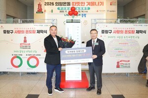 [시정일보 김혁 기자] 중랑구(구청장 류경기)는 지난 14일 오후, ‘2026 희망온돌 따뜻한 겨울나기’의 시작을 알리는 사랑의 열매 온도탑 제막식을 개최했다.‘2026 희망온돌 따뜻한 겨울나기’는 주민이 성금·성품을 모아 이웃을 돕는 중랑구 대표 겨울나기 사업이다. 모금은 내년 2월14일까지 진행되며, 목표액의 1%가 모일 때마다 사랑의 온도탑이 1도 상승한다.제막식에는 류경기 중랑구청장과 서울사회복지공동모금회, 지역사회보장협의체 관계자 등 80여 명이 참석했으며, 온도탑 제막과 기부 릴레이가 이어졌다. 녹색병원 장례식장(대표 조